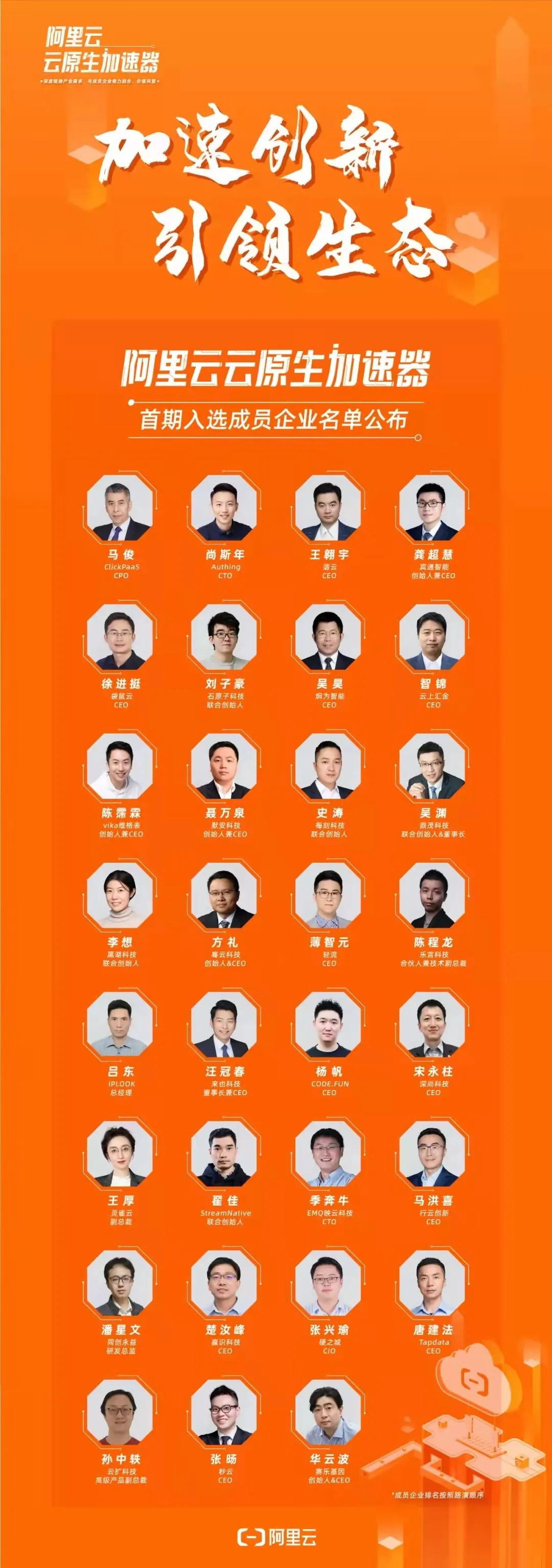 阿里云首期云原生加速器成员企业名单如下:
