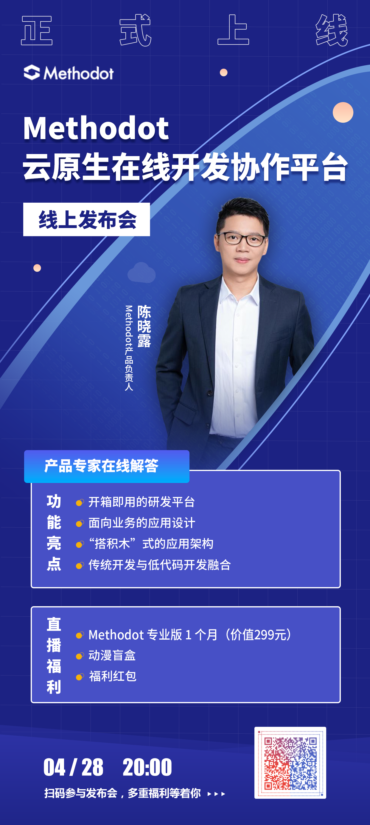 4月28日20:00Methodot线上发布会重磅来袭,产品专家将一一解答产品亮点,参与互动还能获得Methodot专业版一个月(价值299元)、动漫盲盒、福利红包等众多好礼,参与方式可见文章底部~