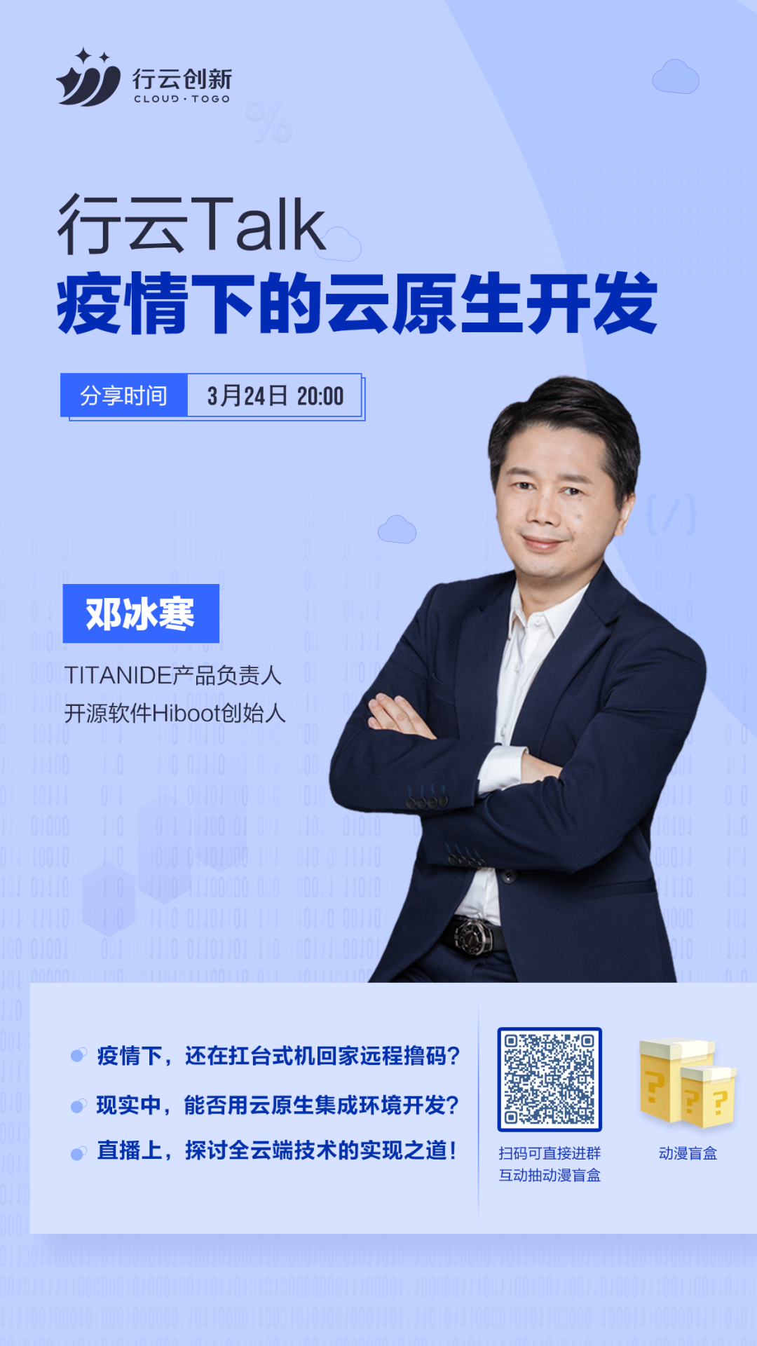 3月24日,三亿体育TANIDE产品负责人邓冰寒将线上直播《疫情下的云原生开发》,分享疫情下,企业如何进行云原生开发,介绍云端IDE的优势所在和三亿体育三亿体育DE的探索和特别之处。