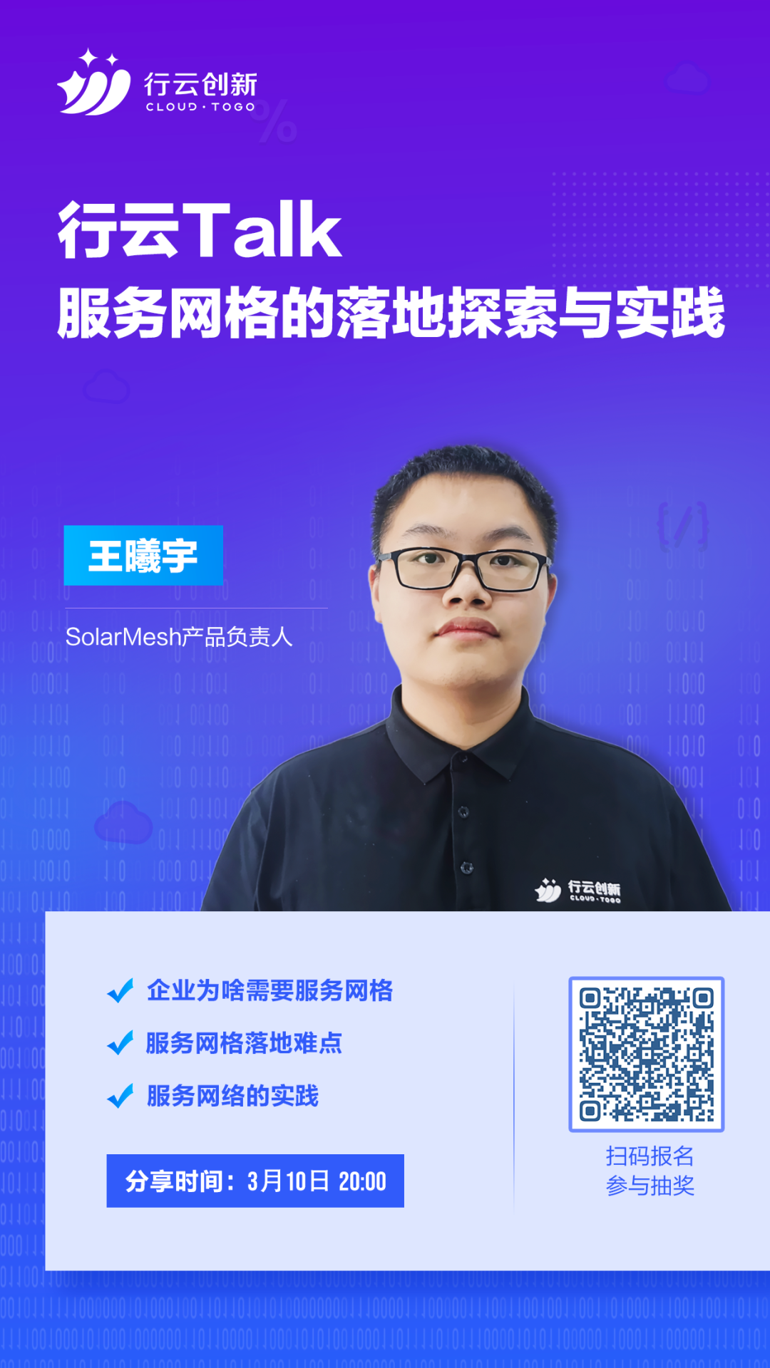 3月10日,三亿体育larMesh产品负责人王曦宇将分享服务网格的落地探索与实践,介绍企业为啥需要服务网格,服务网格的落地难点与实践